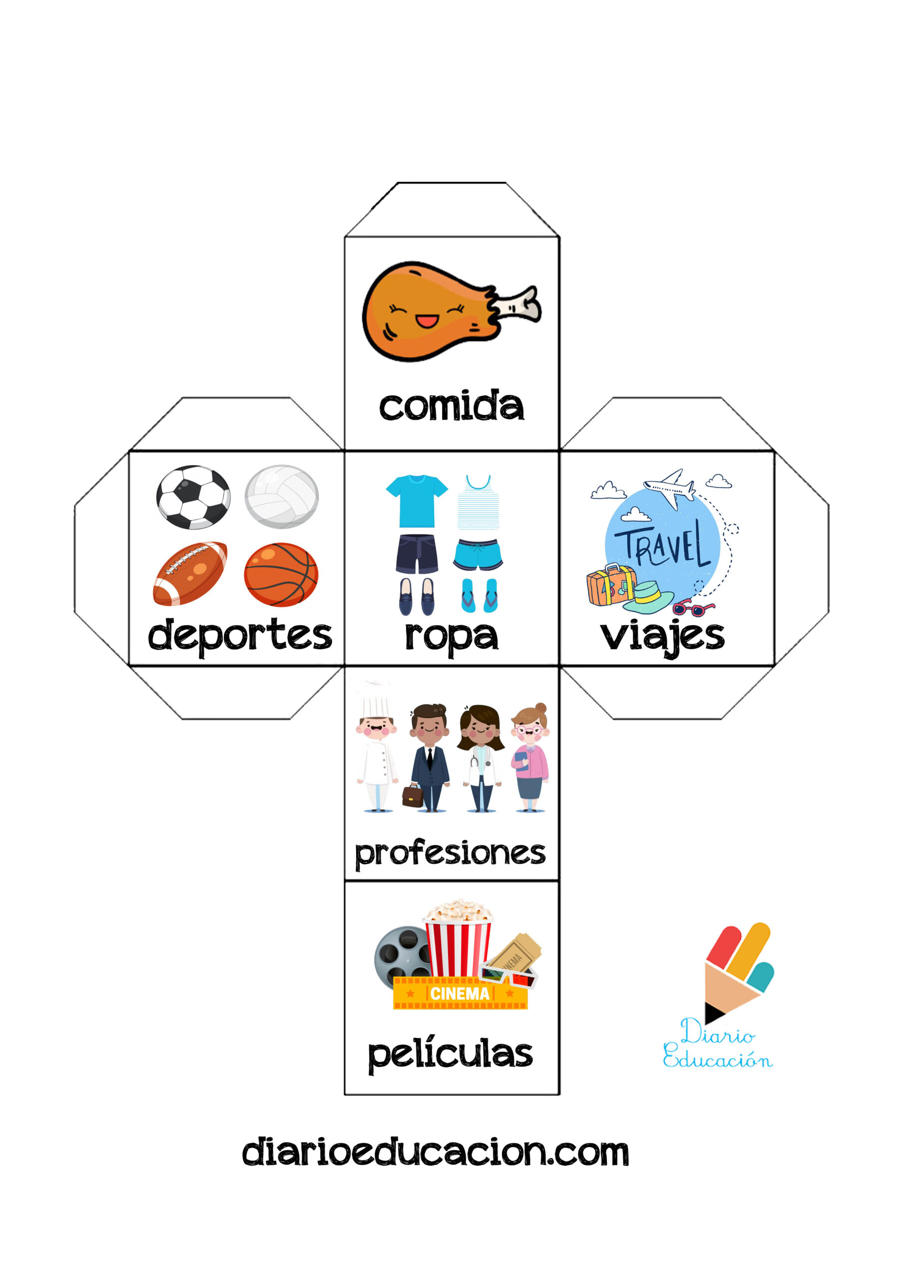 Para este juego se necesita trabajar en pequeños grupos de 2 a 4, a cada equipo se le proporciona un par de dados, uno con preguntas y el otro con categorías.