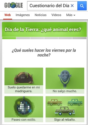 Con motivo a esta fecha Google celebra este día con el doodle ¿Qué animal eres? Una aplicación que te plantea 6 preguntas sobre tus hábitos personales y al final te indica a que tipo de especie animal te pareces más, ¿ te a través a saber que animal?